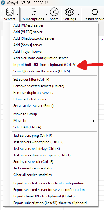 در این مرحله باید کانفیگ را کپی کرده و با استفاده از کلید های ترکیبی CTRL+V در صفحه پیست کنید. یا از روش زیر اقدام به وارد کردن کانفیگ کنید.