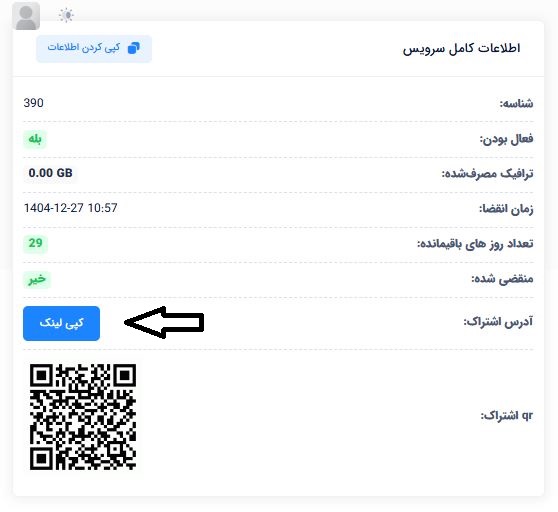 روی دکمه کپی لینک بزنید، لینک را در مرورگر باز کنید کانفینگ براتون نمایش داده میشود