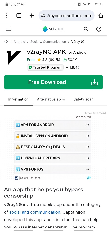 بعد از دریافت و نصب نرم افزار V2Rayng را نصب نمایید.