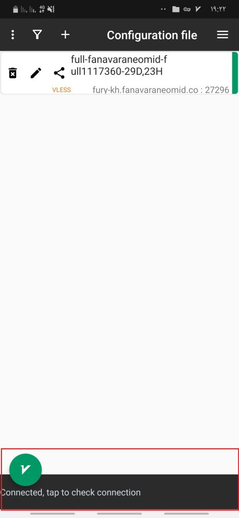 6- با سبز شدن رنگ آیکن اتصال V2Rayng میتوانید متوجه شوید که V2RayNG متصل است و میتوانید از این برنامه استفاده کنید.