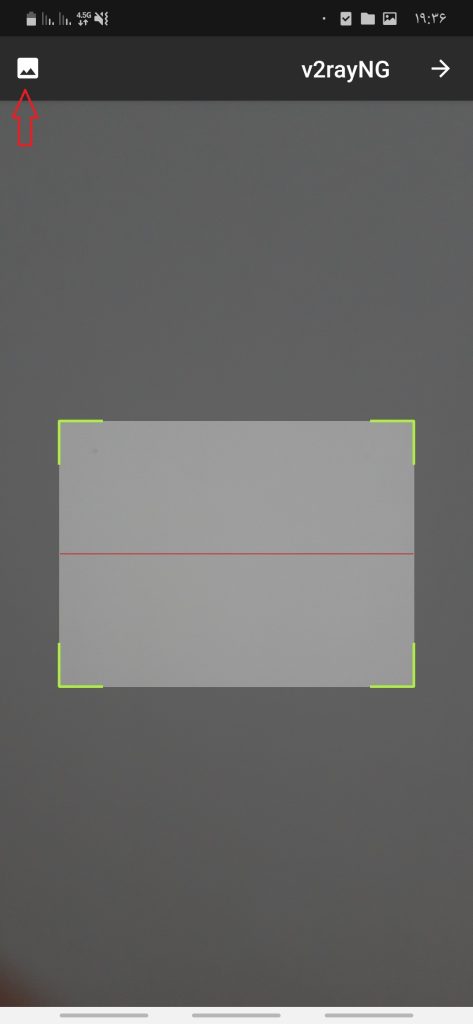 2- روی آیکن گالری در بالای صفحه سمت چپ ضربه بزنید. بعد از باز شدن گالری گوشی عکس QR Code را انتخاب کنید. بعد از اضافه شدن سرور به برنامه V2RayNG میتوانید به آن متصل شوید.