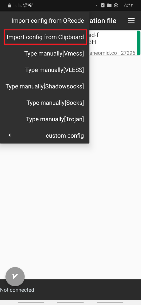 الف – روش اتصال V2Rayng با کد کانفیگ در اندروید